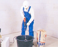 • 약 7리터의 물에 조적용 몰탈 1포(25kg / 포)를 넣고 혼하봉을 끼운 교반기를 사용하여 약 5분간 혼합한다.